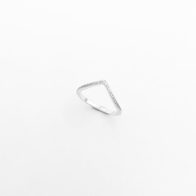 Anel Aparador Meio Aro Cravejado com Zircônia Cristal